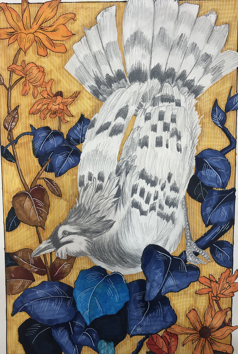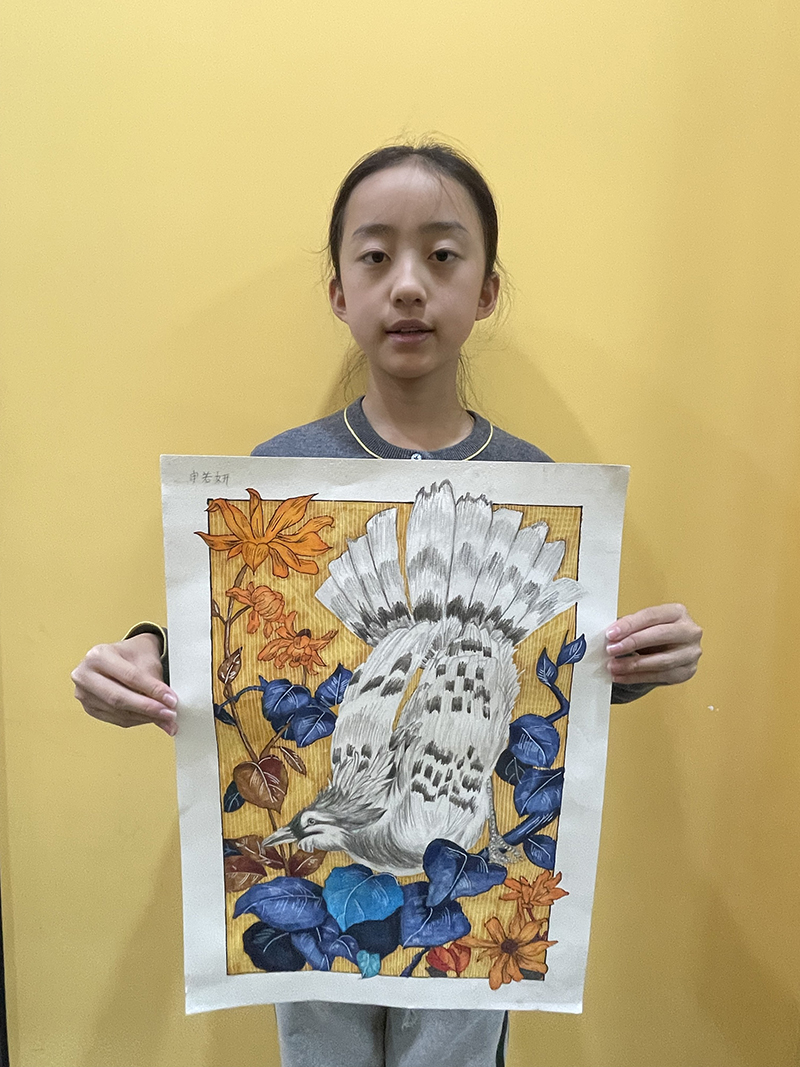 申若妍:12歲 畫(huà)齡:4年 作品名稱(chēng):《鳥(niǎo)》 指導(dǎo)老師:綠城麗達(dá)教學(xué)基地——王碧美