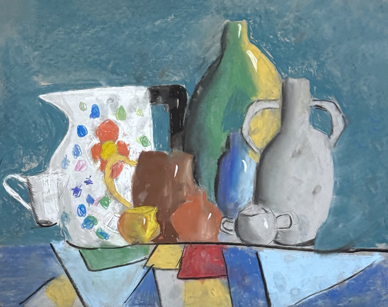 梁詩然:6歲 畫齡:1年 作品名稱:《色粉靜物》 指導(dǎo)老師:城陽東方城教學(xué)基地——陳楓儀
