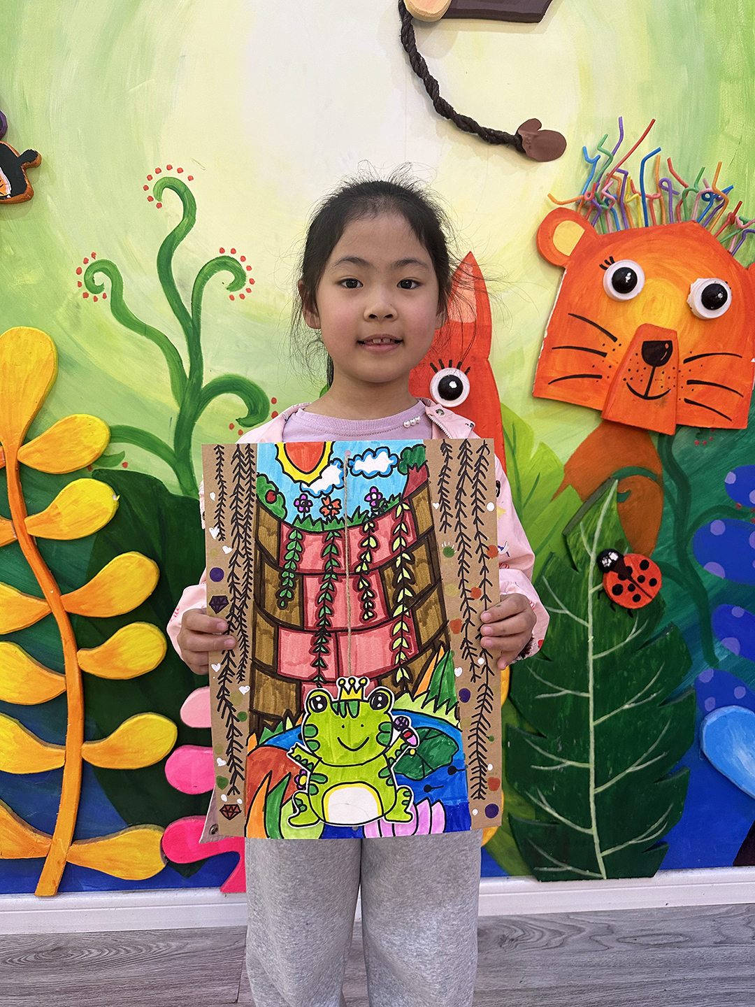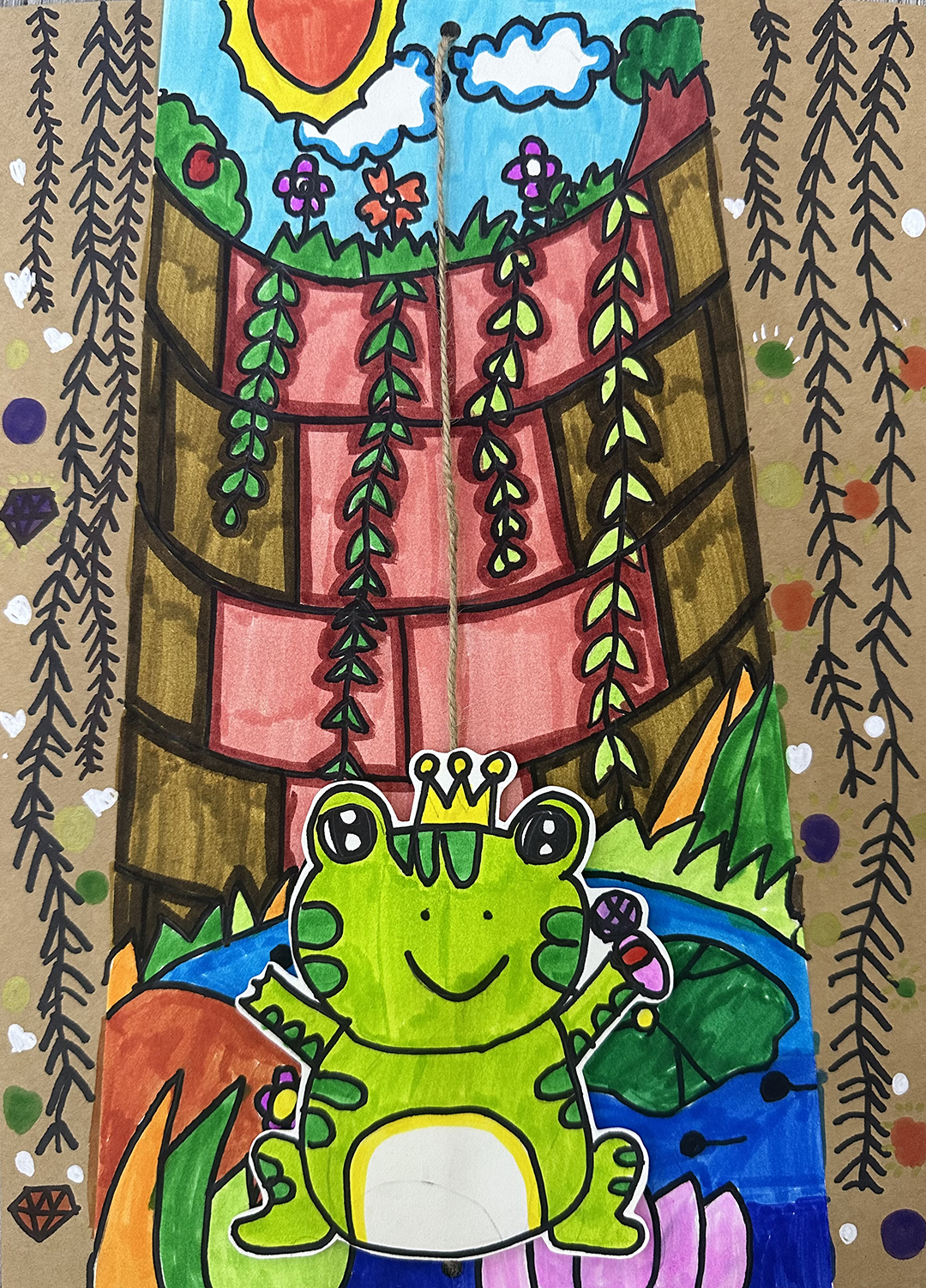 劉家鴻:6歲 畫齡:6個月 作品名稱:《井底之蛙》 指導(dǎo)老師:即墨寶龍教學(xué)基地——胡玉鑫