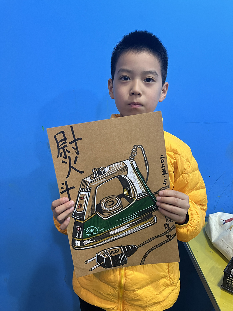 叢冠霖:10歲 畫齡:4年 作品名稱:《我家的老物件》 指導(dǎo)教師:黃島中聯(lián)教學(xué)基地——葛曉璐