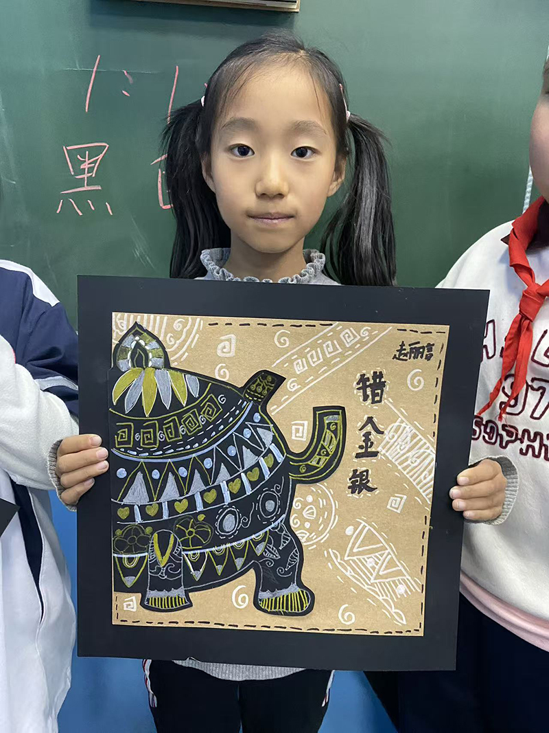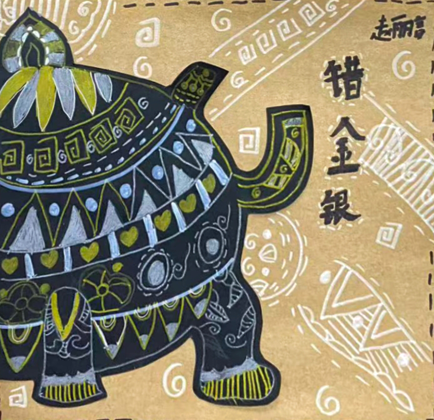 趙麗言:7歲 畫齡:14個月 作品名稱:《錯金器物》 指導(dǎo)老師:膠南維客教學(xué)基地——王甜甜