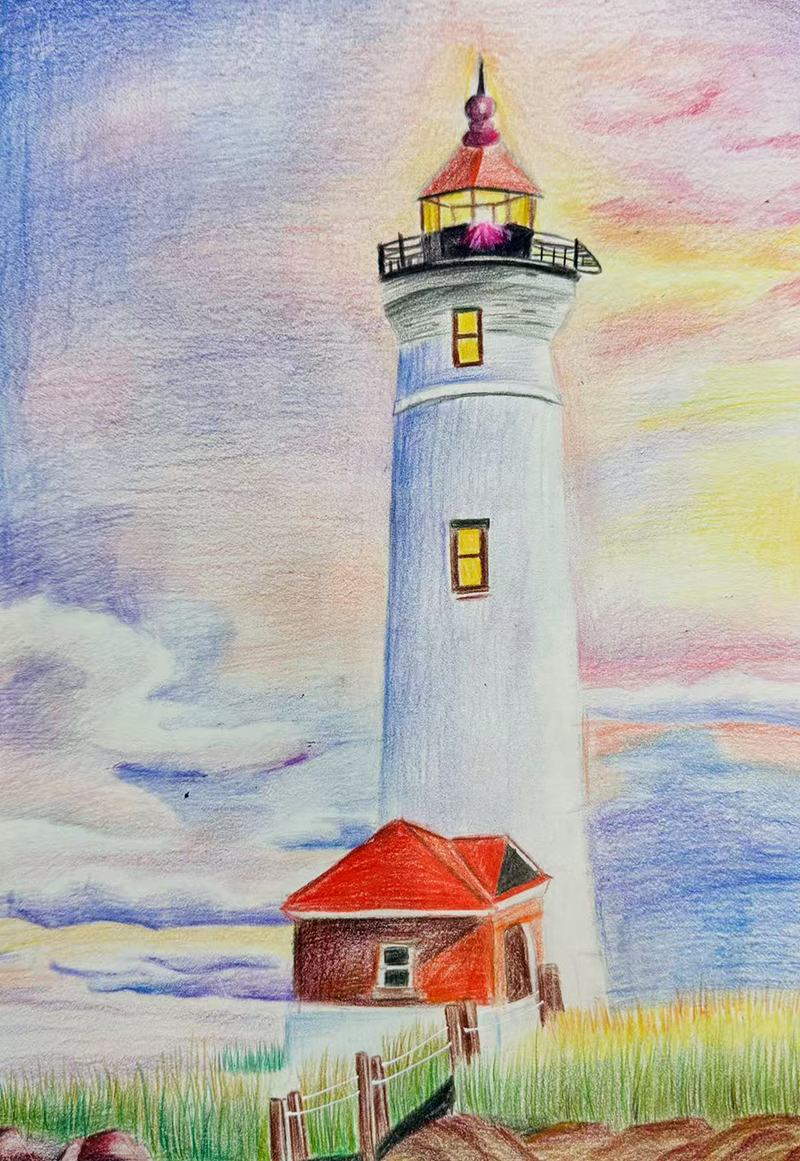 劉曜然:13歲 畫齡:5年 作品名稱:《燈塔》 指導(dǎo)老師:黃島官廳教學(xué)基地——穆婧
