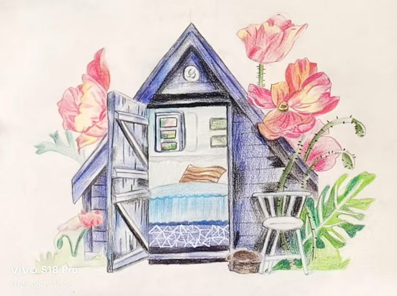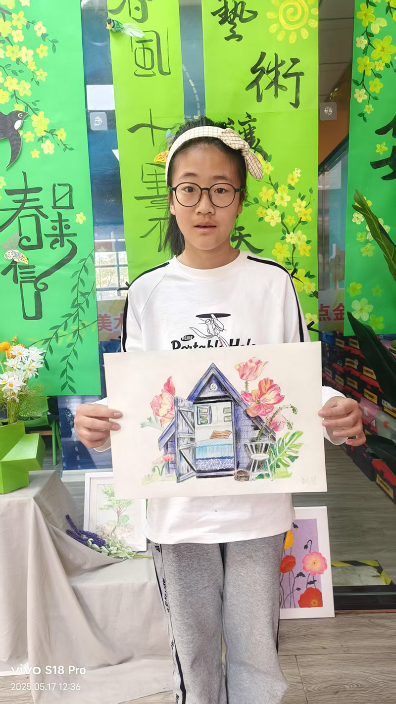 姜晴馨:11歲 畫齡:3年 作品名稱:《彩鉛建筑》 指導(dǎo)老師:黃島官廳教學(xué)基地——韓連科