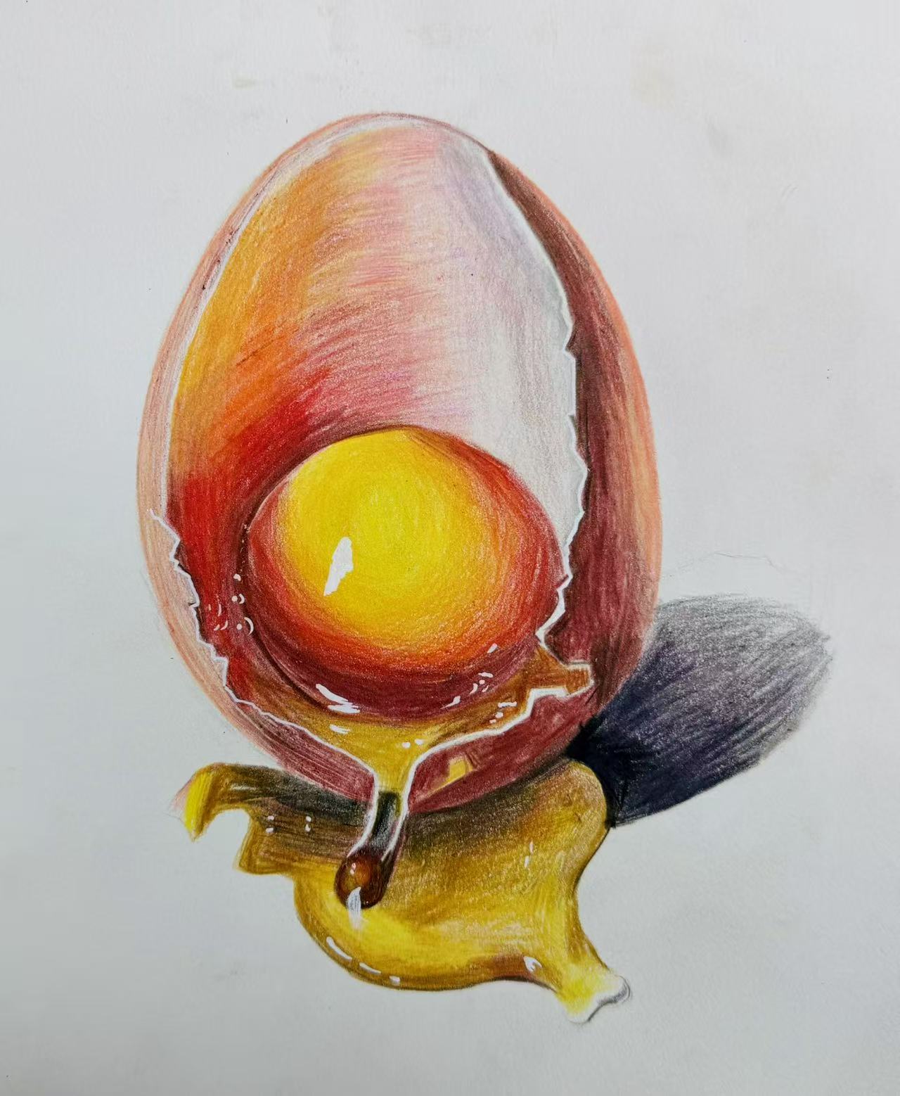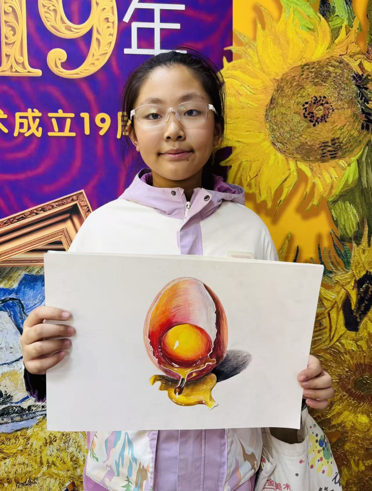 孫晗:12歲 畫齡:2年半 作品名稱:《雞蛋》 指導老師:黃島官廳教學基地——穆婧