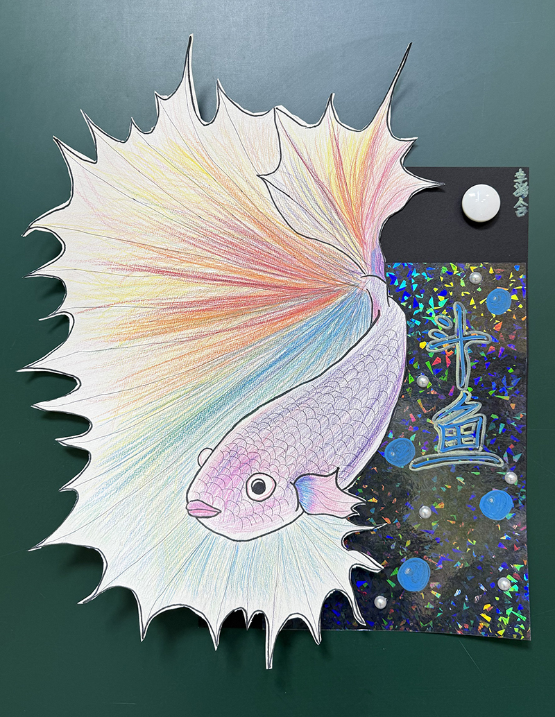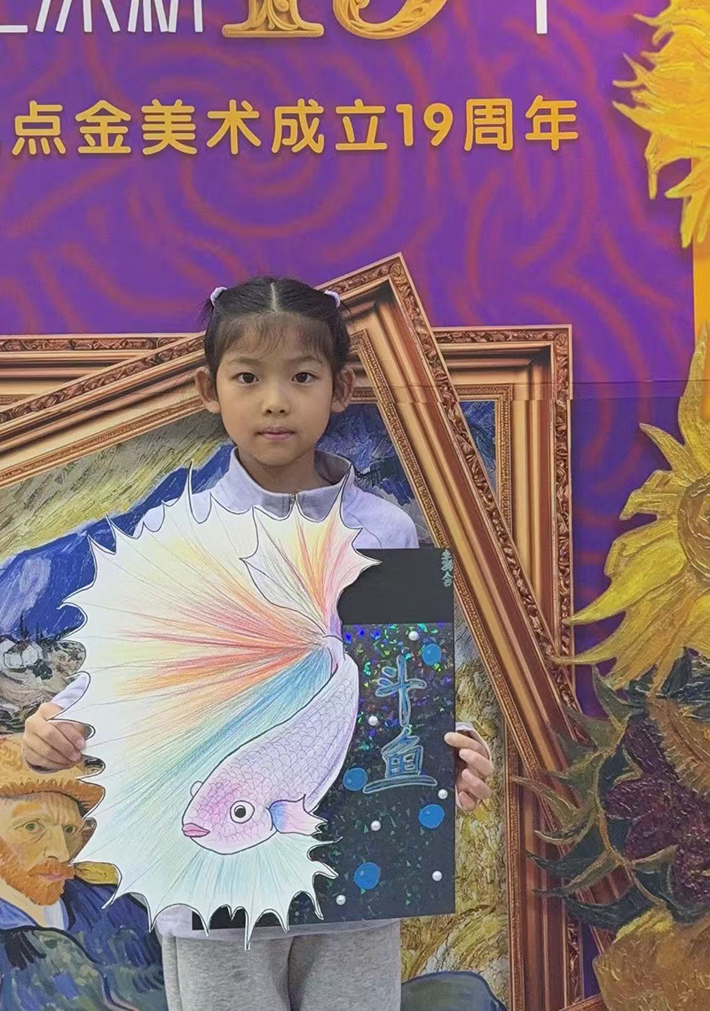 李潞含:9歲 畫齡:2年 作品名稱:《斗魚》 指導(dǎo)老師:李滄星光大道教學(xué)基地——王麗娜