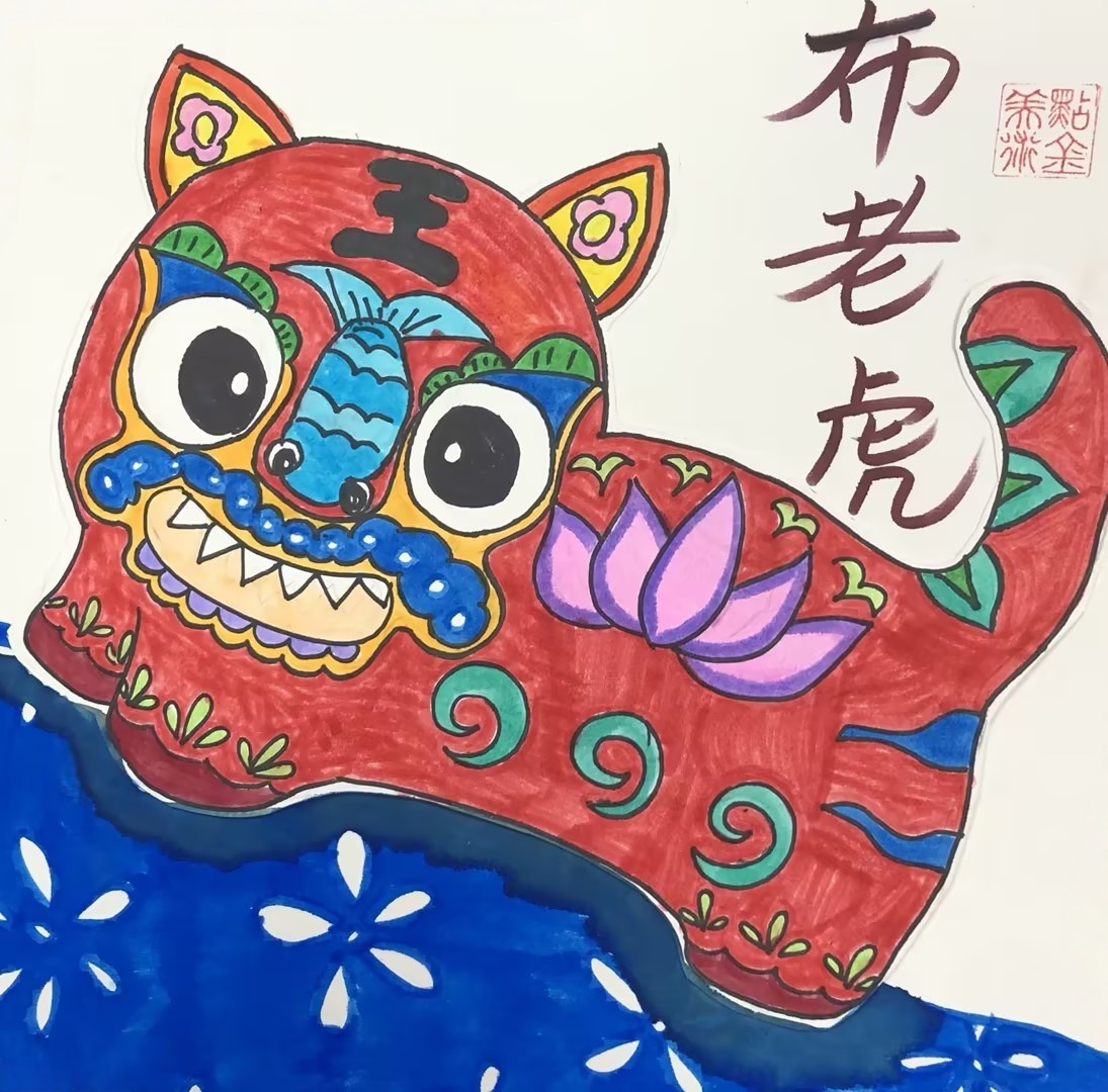 方志遠:7歲 畫齡:1年半 作品名稱:《布老虎》 指導老師:綠城麗達教學基地——付開心