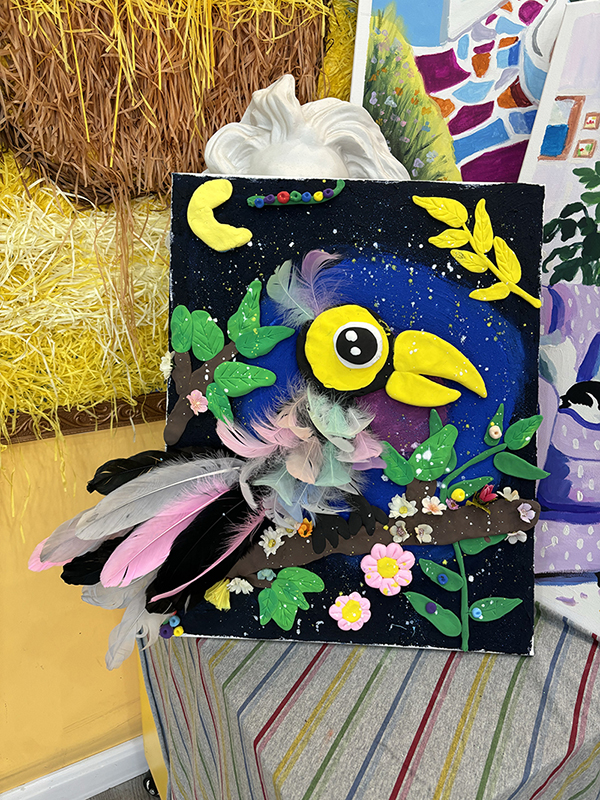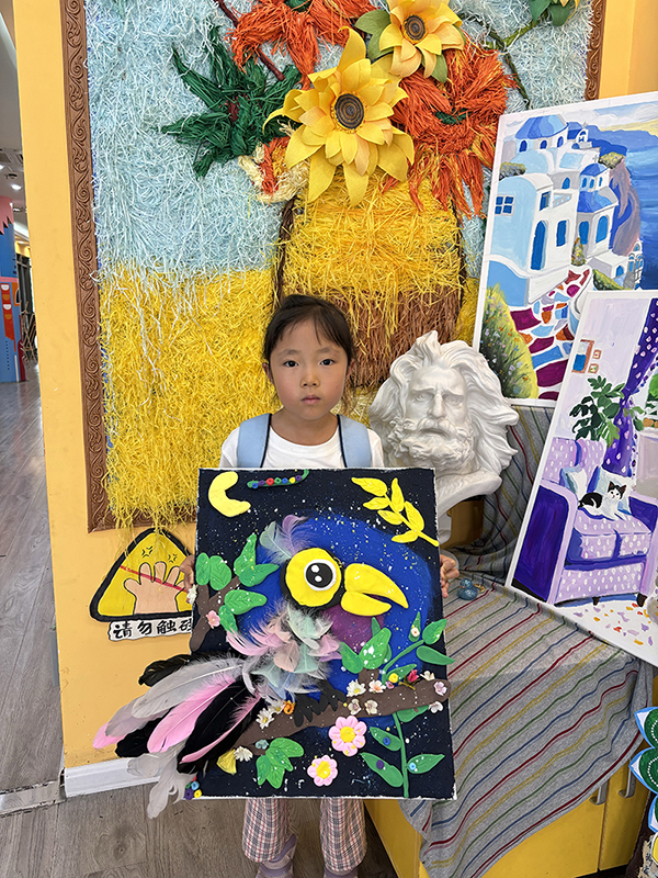 王悅:7歲 畫齡:3年 作品名稱:《巨嘴鳥》 指導(dǎo)老師:嶗山大拇指教學(xué)基地——鐘甜