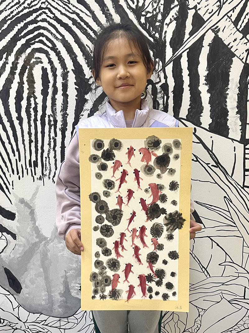 劉語諾:7歲 畫齡:2年 作品名稱:《嬉戲》 指導老師:麗達茂教學基地——汪博涵