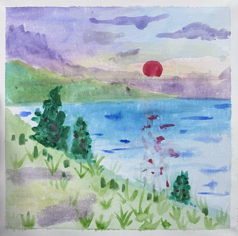 王昊辰:8歲 畫齡:1年 作品名稱:《水彩風(fēng)景》 指導(dǎo)老師:城陽東方城教學(xué)基地——陳楓儀
