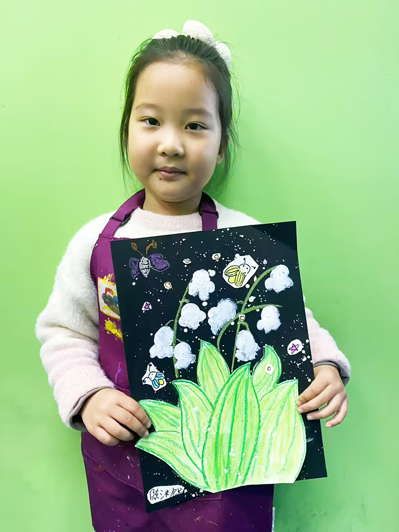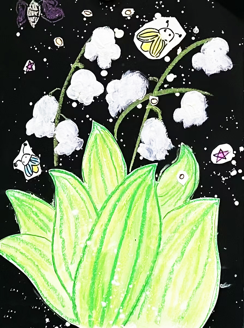 陳沫然:5歲 畫齡:1年半 作品名稱:《鈴蘭花》 指導(dǎo)老師:膠南維客教學(xué)基地——王甜甜