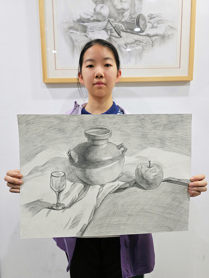 高璟瑤:14歲 畫齡:9個月 作品名稱:《水果靜物組合》 指導(dǎo)老師:星光大道教學(xué)基地——張超博