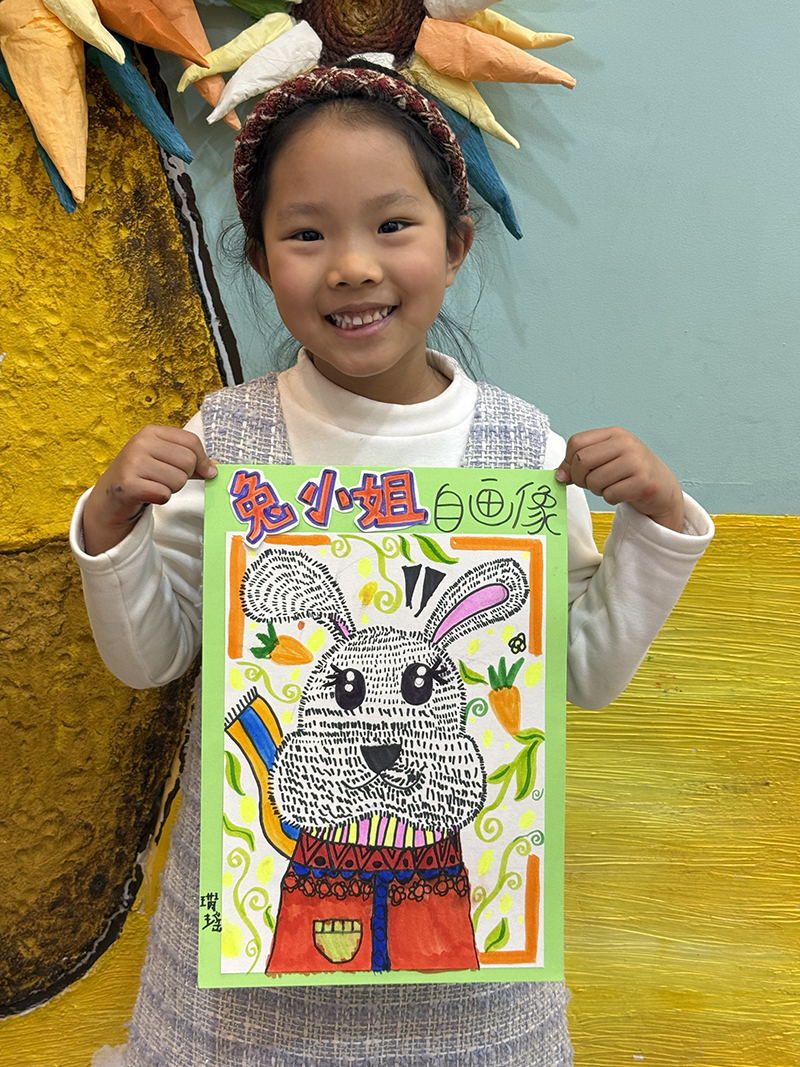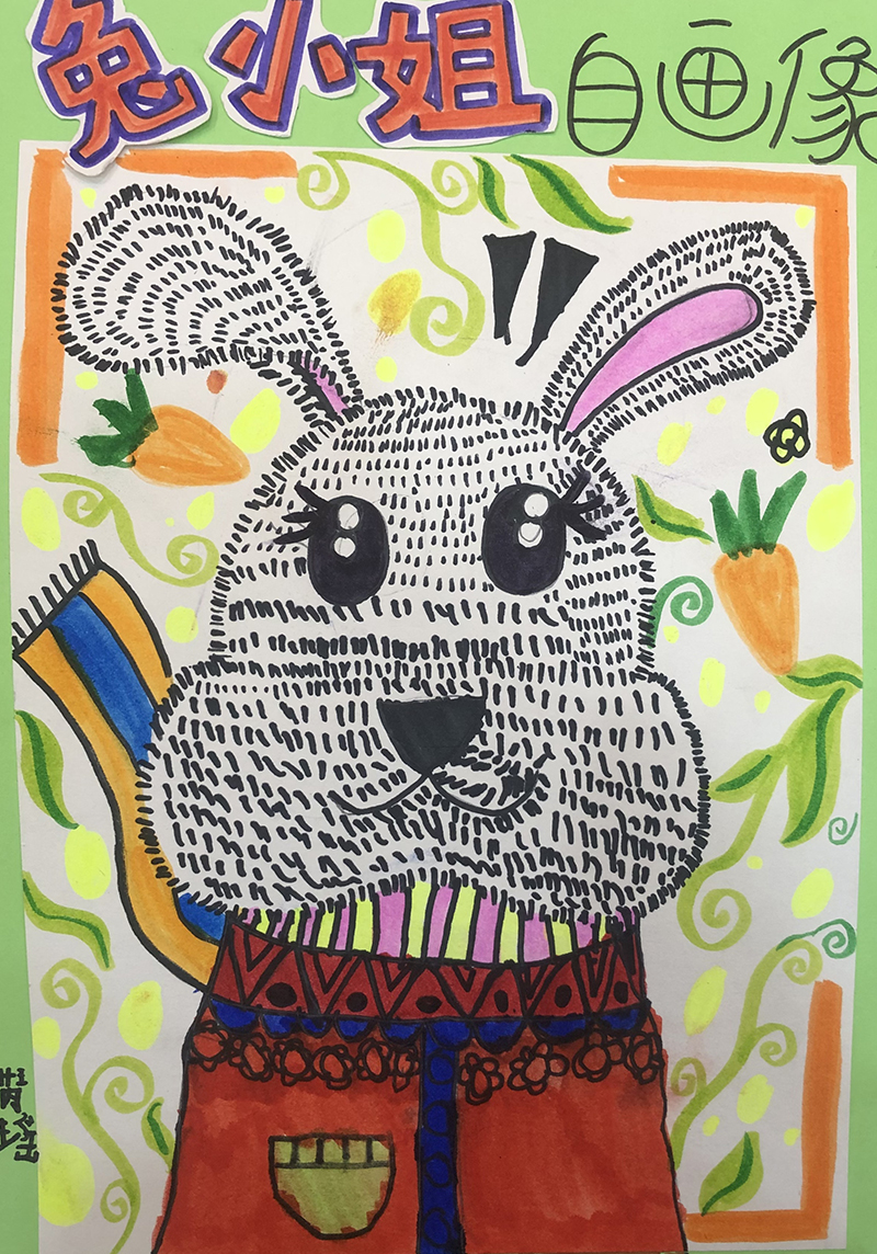 王芮瑤:6歲 畫齡:10個月 作品名稱:《兔子小姐》 指導(dǎo)老師:李滄綠城麗達教學(xué)基地——付開心