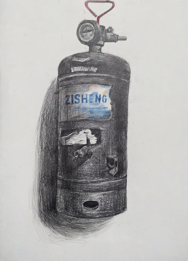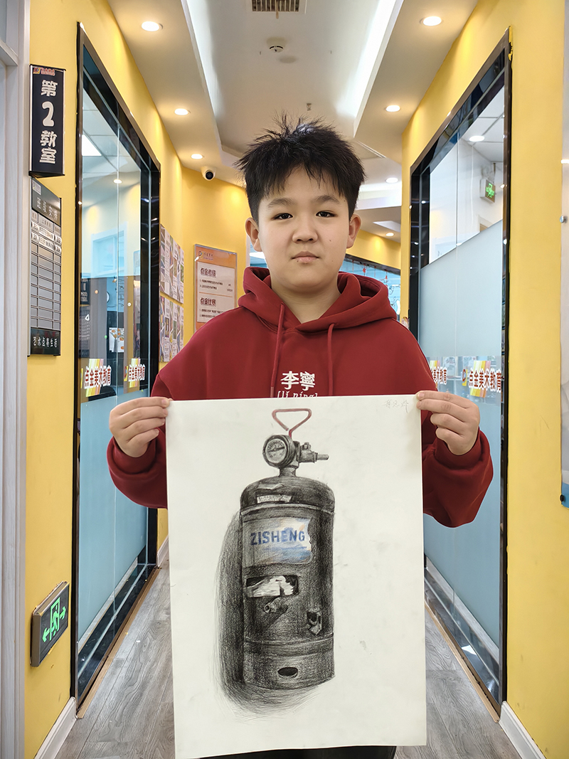 魯昆燁:13歲 畫齡:4年 作品名稱:《滅火器》 指導老師:城陽東方城教學基地——杜亞雪
