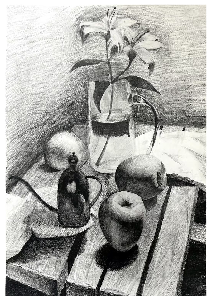 楊新越:12歲 畫齡:1年 作品名稱:《靜物花卉》 指導(dǎo)老師:麗達(dá)茂教學(xué)基地——藍(lán)天