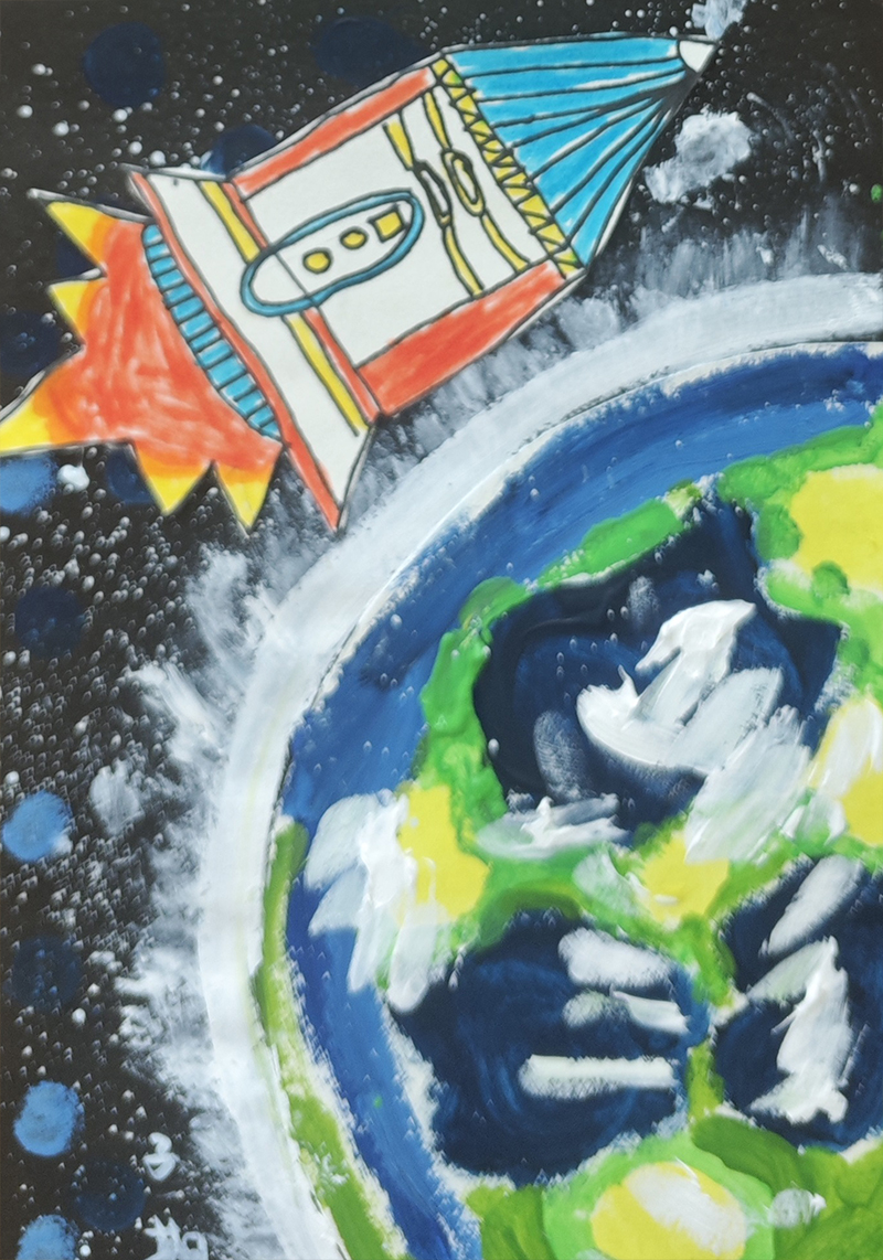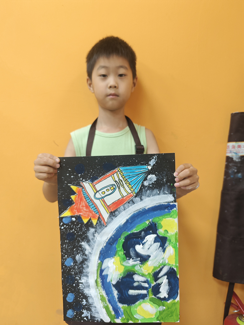 張子期:5歲 畫齡:2個月 作品名稱:《我們的地球》 指導(dǎo)老師:中南世紀城教學(xué)基地——宋欣函