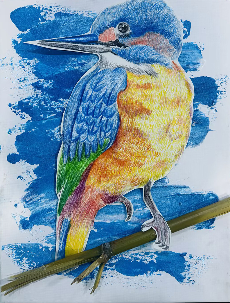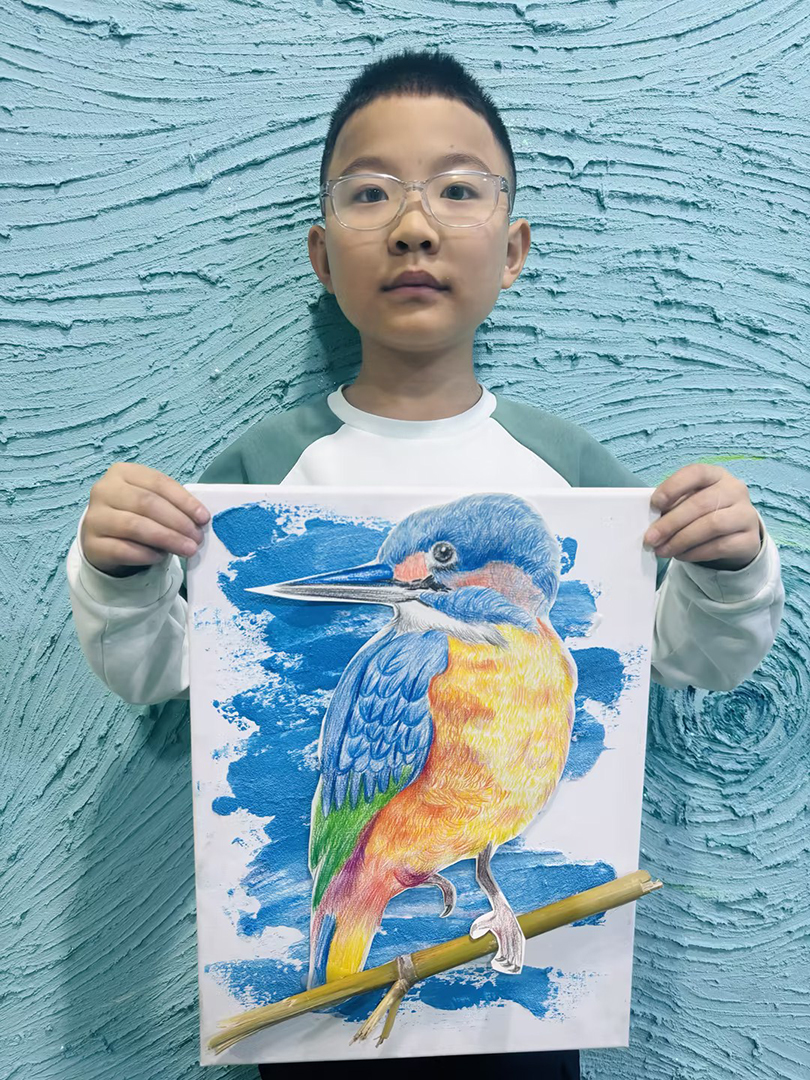 閆瑋宸:10歲 作品名稱:《石英砂和鳥》 指導(dǎo)老師:黃島中聯(lián)教學(xué)基地——王雪
