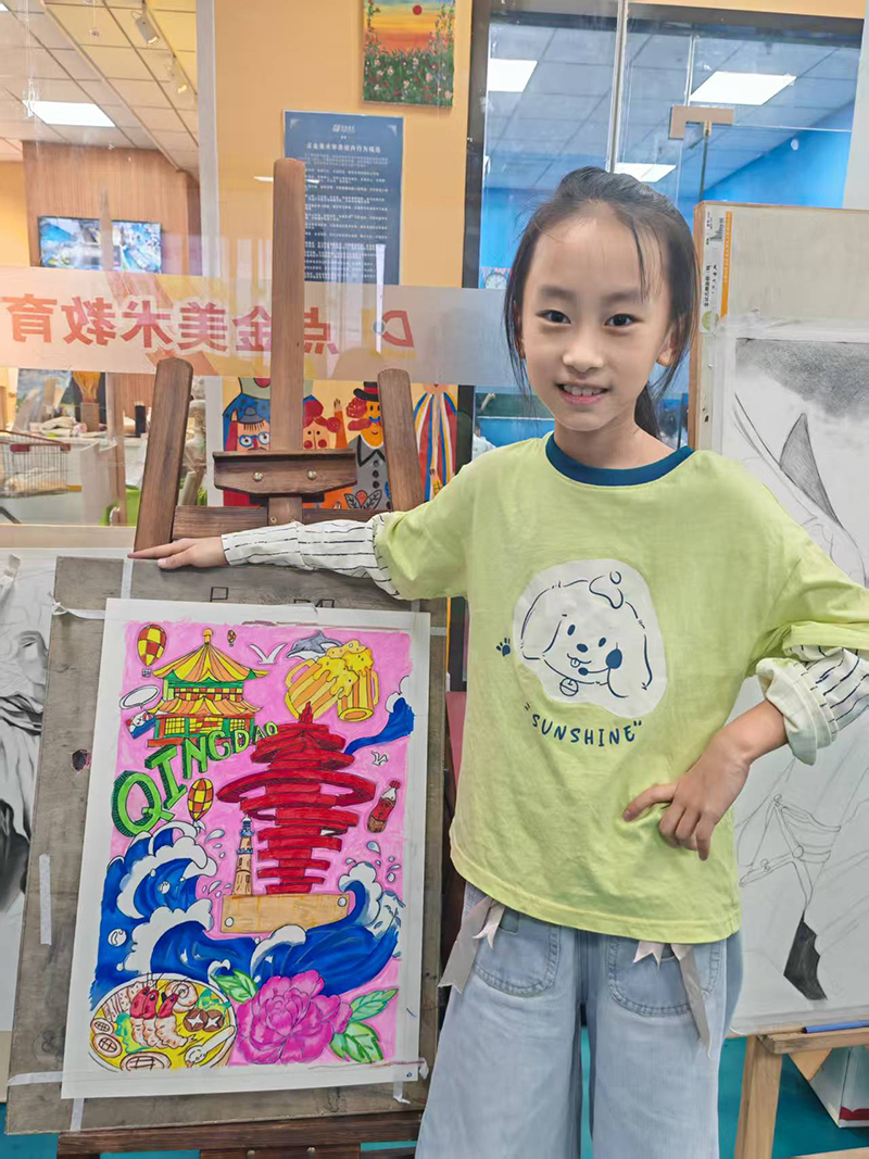 柴靜霞:9歲 畫齡:3年 作品名稱:《向海而生》 指導(dǎo)老師:膠南維客教學(xué)基地——徐婭