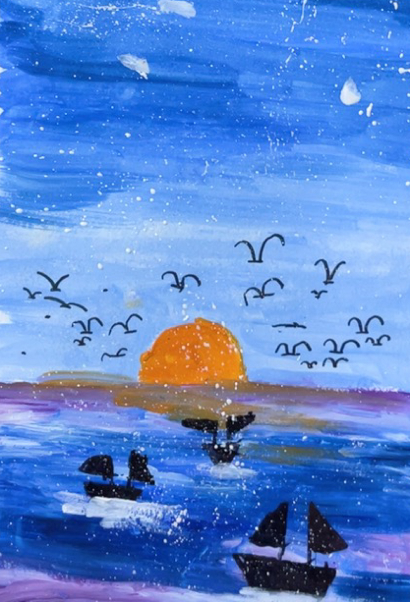 冉荷諾:5歲 畫齡:1年 作品名稱:《日出印象》 指導(dǎo)教師:黃島中聯(lián)教學(xué)基地——牛娟