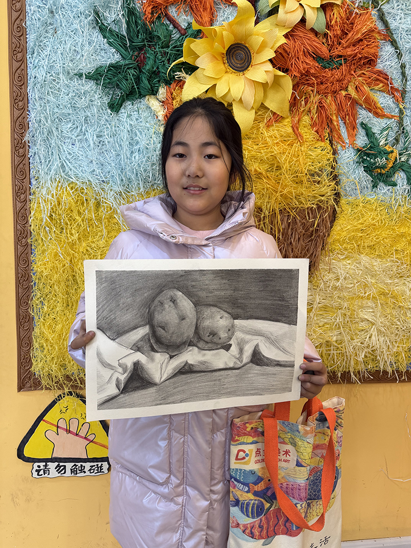 王梓涵:11歲 畫(huà)齡:3年 作品名稱:《靜物-土豆》 指導(dǎo)老師:嶗山大拇指教學(xué)基地——李凌燕