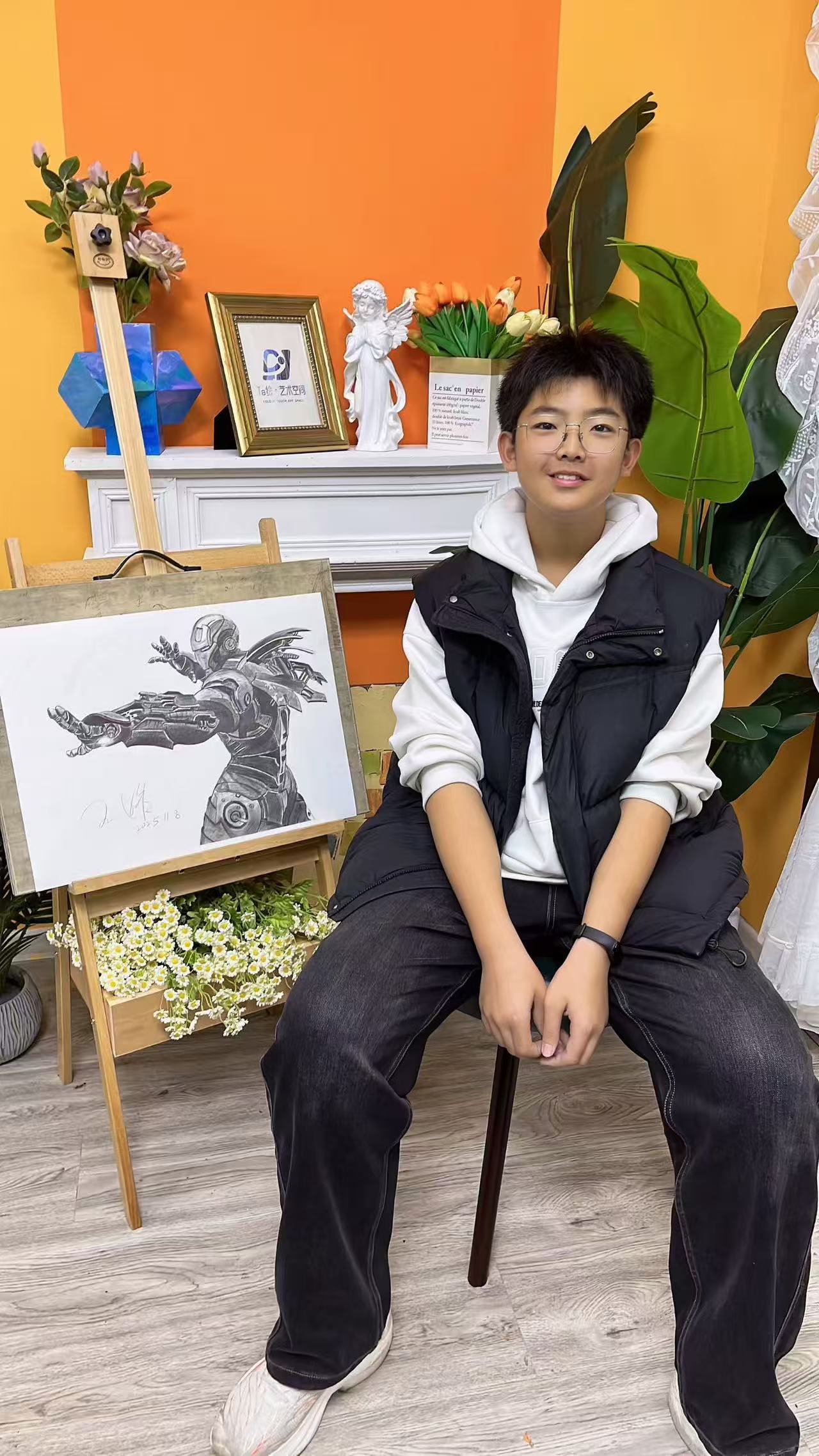 王皓:13歲 畫齡:4年 作品名稱:《鋼鐵俠》 指導(dǎo)老師:李滄順和教學(xué)基地——?jiǎng)⒓?