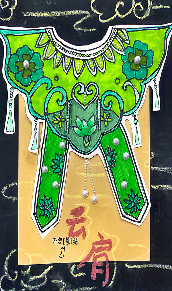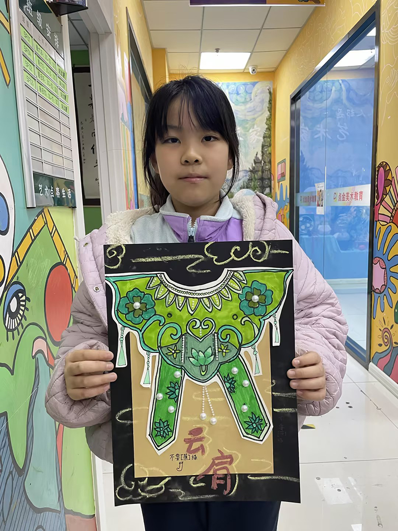 張雨晴:9歲 畫(huà)齡:1年 作品名稱(chēng):《云肩》 指導(dǎo)老師:黃島富春江教學(xué)基地——鞏致瑋