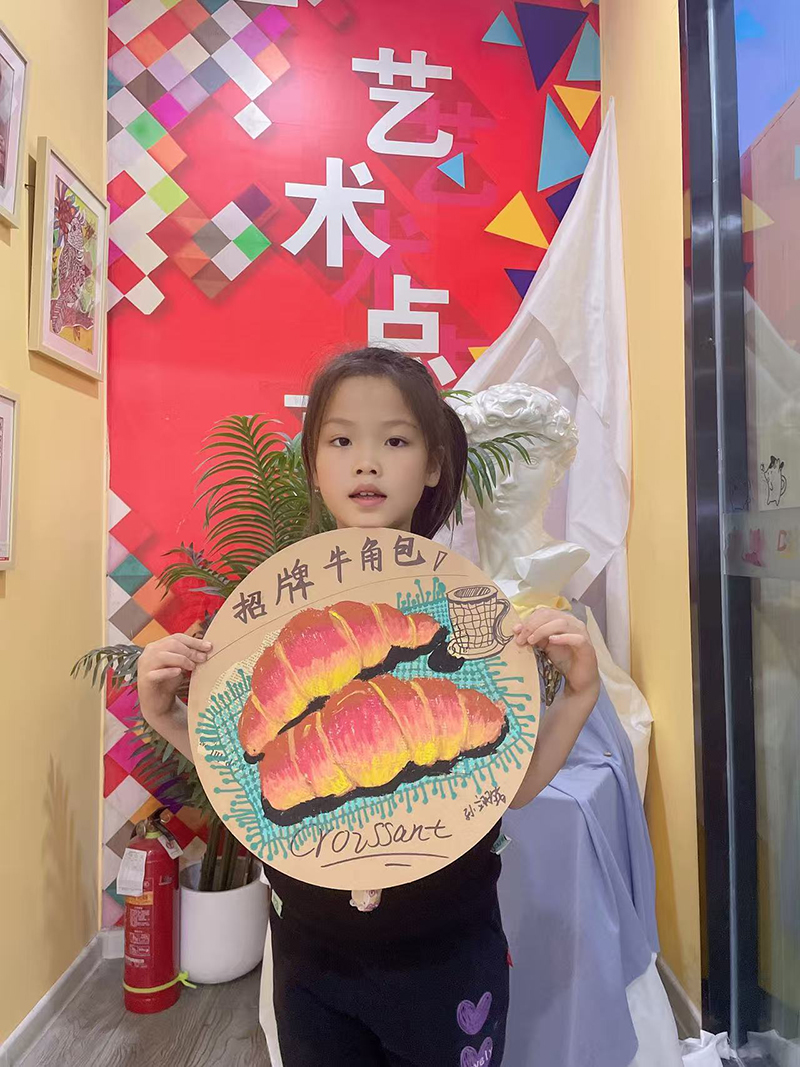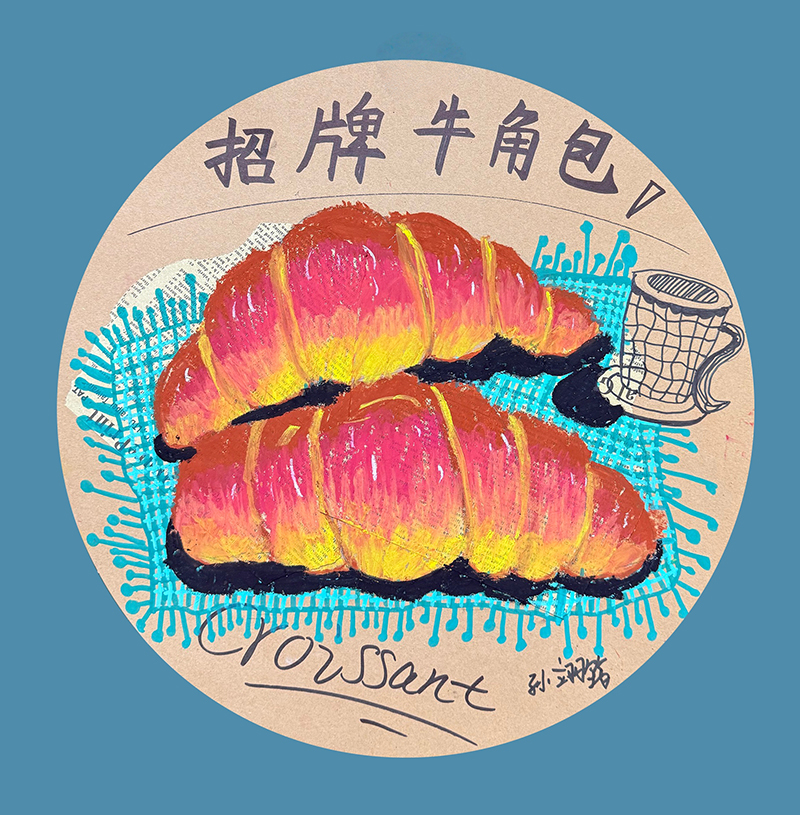 孫翊筠:8歲 畫齡:2年 作品名稱:《牛角包》 指導(dǎo)老師:李滄星光大道教學(xué)基地——王麗娜