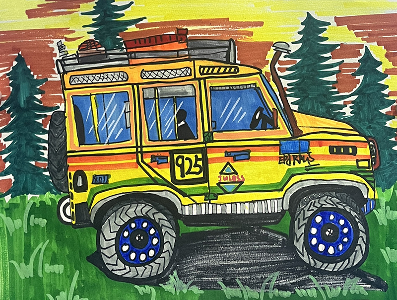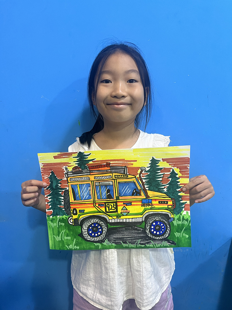 張宜檸:7歲 畫齡:4年 作品名稱:《越野車》 指導(dǎo)老師:黃島中聯(lián)教學(xué)基地——葛曉璐