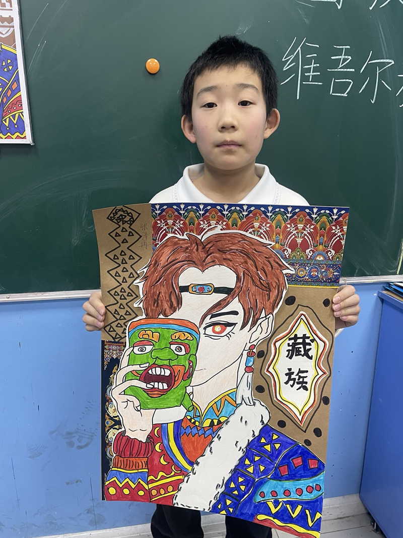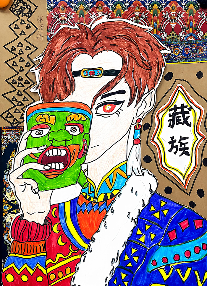 張澤冉:9歲 畫(huà)齡:3年 作品名稱:《藏族》 指導(dǎo)老師:黃島富春江教學(xué)基地——夏夢(mèng)竹