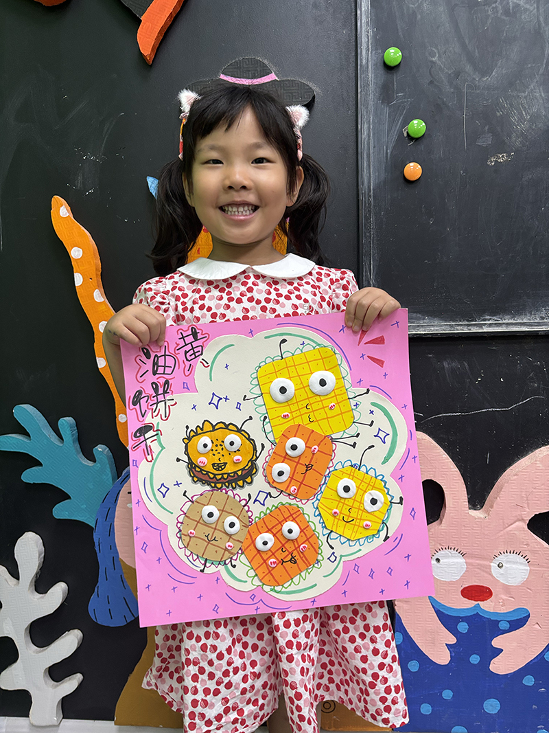 史昕禾:5歲 畫齡:6個月 作品名稱:《黃油小餅干》 指導(dǎo)老師:嶗山大拇指教學(xué)基地——趙蕾