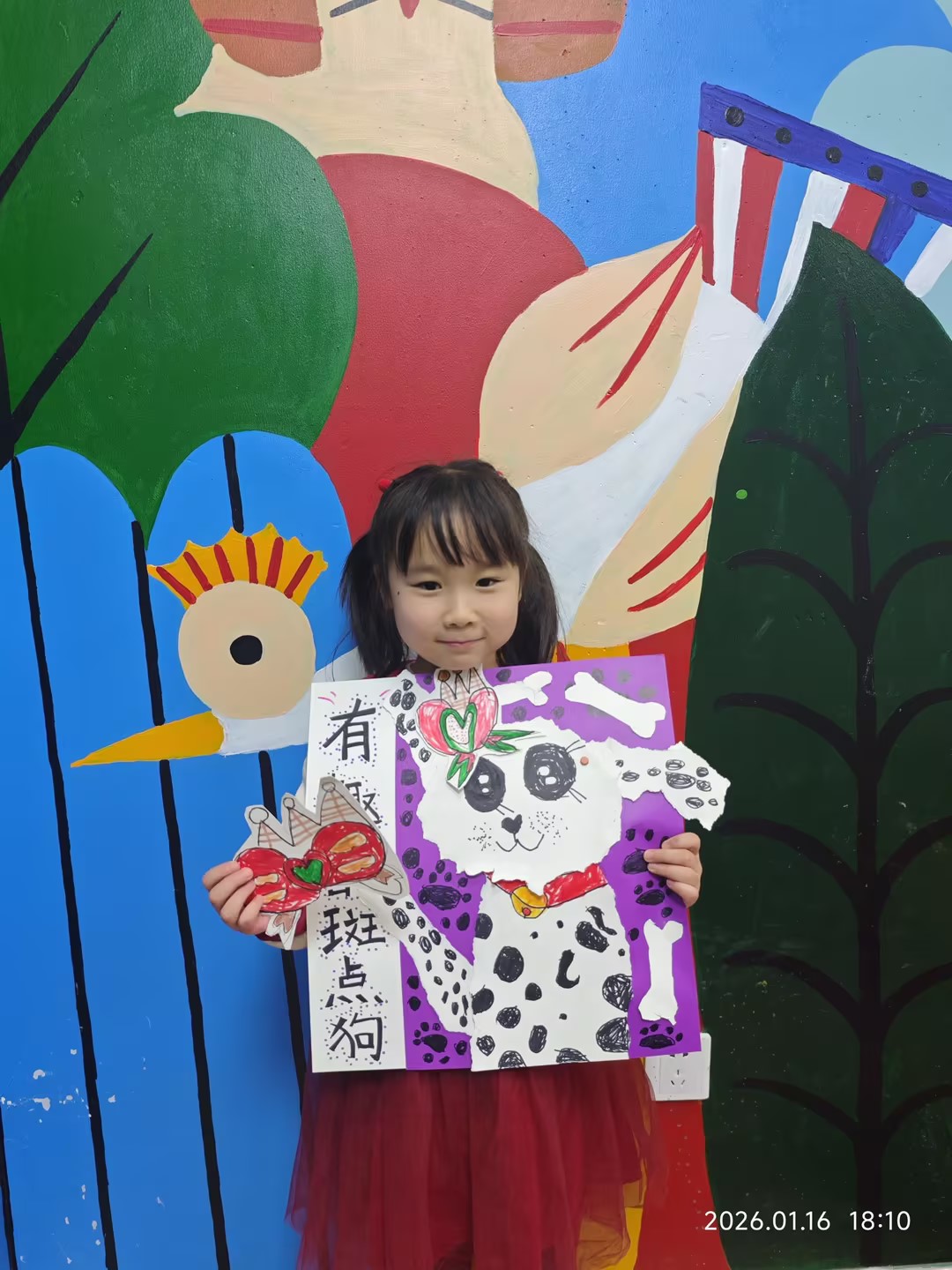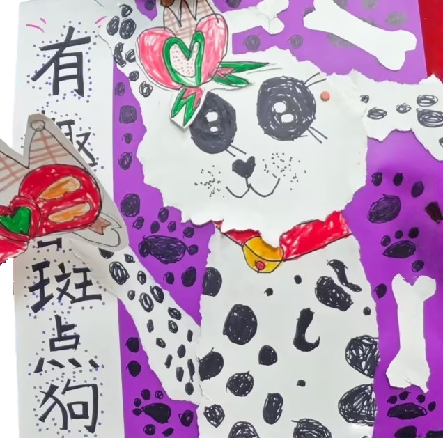 孔小貝:4歲 畫(huà)齡:4個(gè)月 作品名稱(chēng):《有趣的斑點(diǎn)狗》 指導(dǎo)老師:四方校區(qū)——厲燕