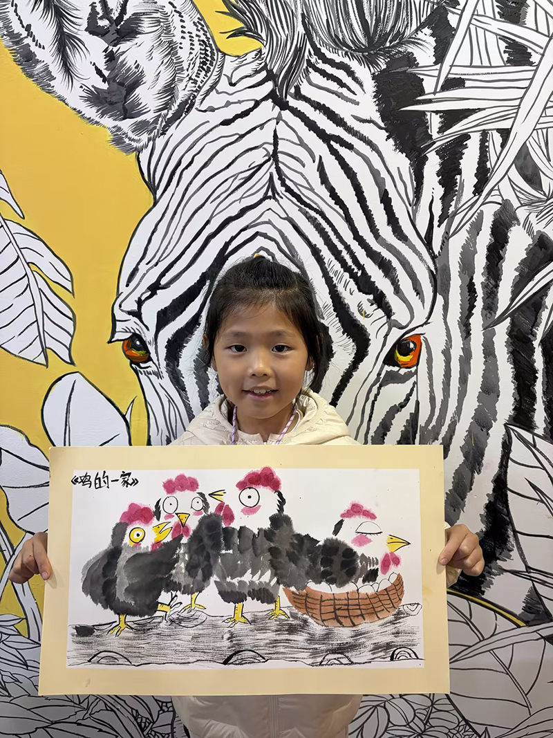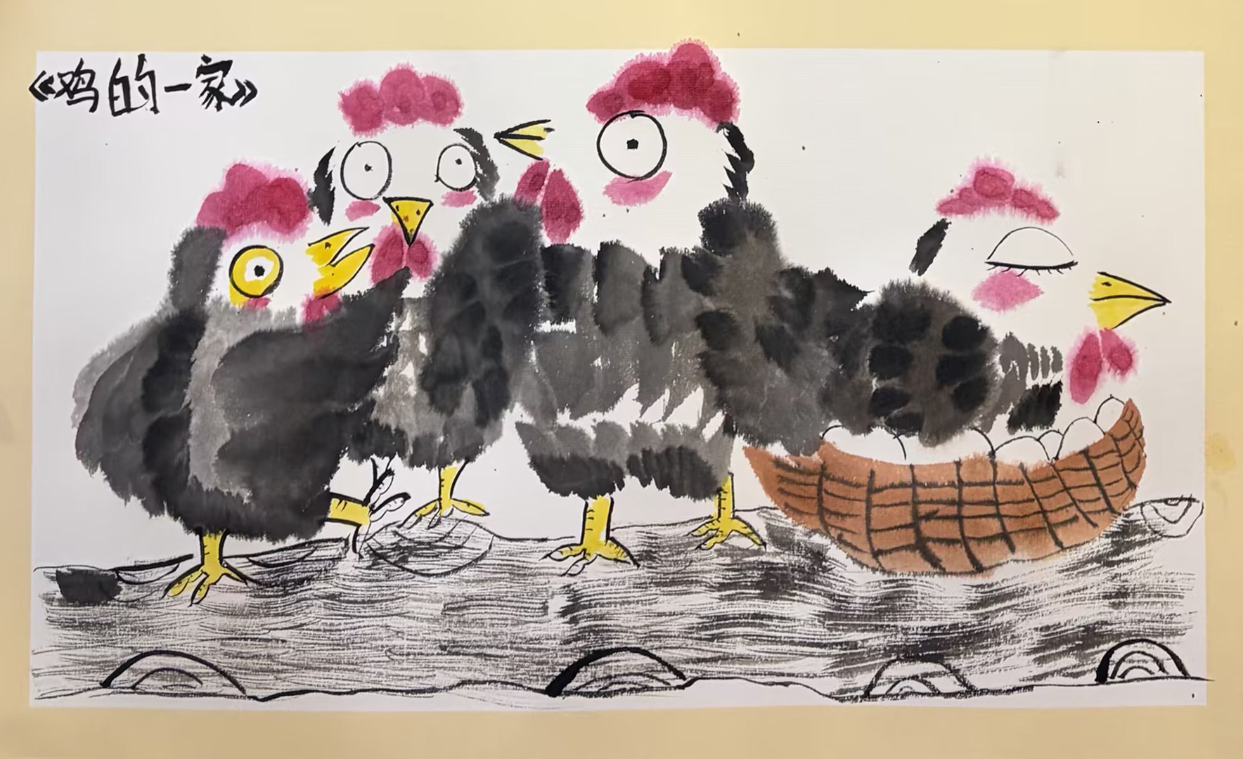 劉錦沛:8歲 畫齡:6個月 作品名稱:《雞的一家》 指導老師:黃島中聯(lián)教學基地——秦敏鴻