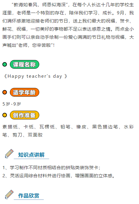 點金美術教師節(jié)主題課免費送!小心意,深情意
