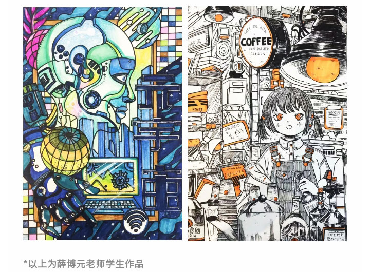 “隨著新課程的發(fā)布,我?guī)ьI校區(qū)老師更新教學觀念,根據班級情況結合課改后的內容,結合美術能力的培養(yǎng)明確教學目標及重難點;優(yōu)化教學方法,進行試講與不同藝術形式的嘗試,并結合課件內容,讓學員能夠在掌握技法的同時大膽創(chuàng)新,并有著自己獨有的風格,同時關注學員情感需求。”薛博元老師說道。