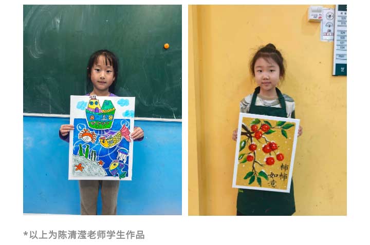 正是因為有了對藝術(shù)的熱愛與不懈追求,才有了想要把自己熱愛的事物傳遞的信念。在教學(xué)的過程中,陳清瀅老師也會竭盡全力幫助孩子們通過各種方法來提升學(xué)習(xí)的興趣。
