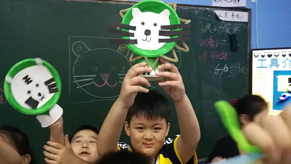 孩子們在任課老師引導(dǎo)下,踴躍參與到課堂教學(xué)中,在了解紙杯小動(dòng)物的基本構(gòu)造的基礎(chǔ)上,初步掌握剪、揉、貼等多種制作方法,對紙杯、紙盤合理利用,精心設(shè)計(jì),制作出了充滿童趣的小獅子。