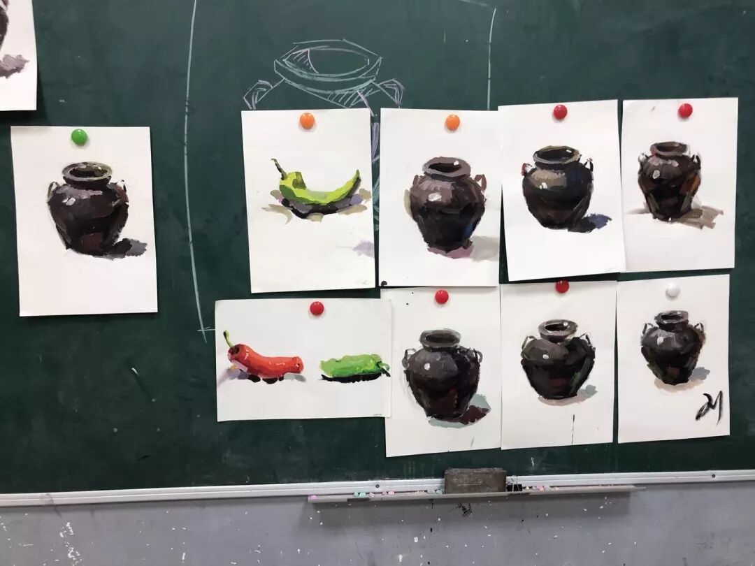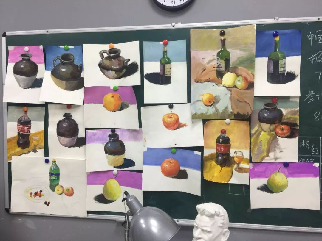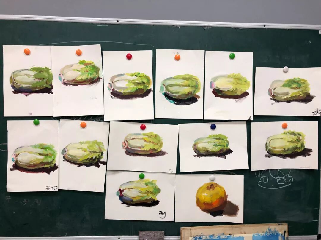 萬(wàn)達(dá)校區(qū)專業(yè)繪畫班級(jí),12個(gè)班級(jí)參與了此次水粉課程集訓(xùn),1個(gè)多月的時(shí)間里,孩子們從水粉基礎(chǔ)知識(shí)與單色訓(xùn)練入手,到單個(gè)水粉靜物,再到水果、蔬菜類水粉靜物組合,逐漸的掌握了水粉用水、調(diào)色、用筆、造型與調(diào)整的繪畫技法,能夠較好的處理物象在畫面中的大小、位置和空間關(guān)系,獨(dú)立完成一個(gè)生動(dòng)有序的畫面。