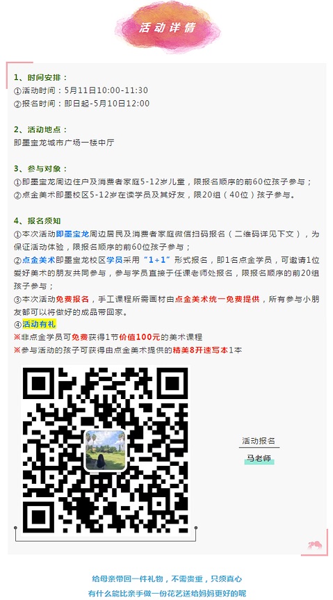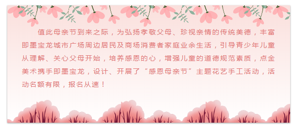 點(diǎn)金美術(shù)&即墨寶龍“感恩母親節(jié)”主題活動(dòng)開始報(bào)名啦