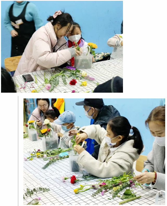 香雪蘭、康乃馨、洋牡丹和非洲菊,加上配花尤加利葉和滿天星,老師們將花園搬進了教室,讓家長和孩子們在指尖感受美妙的春天。