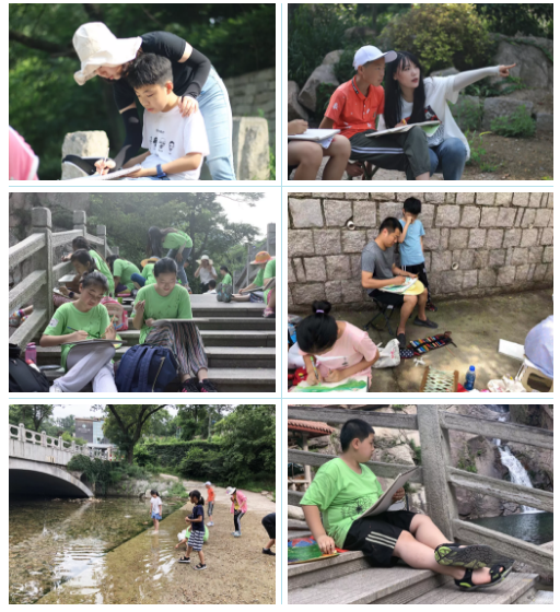 3天的時間,孩子們沉醉于嶗山美景,醉心于藝術(shù)創(chuàng)作,于樹影婆娑中細繪嶗山,流連忘返。正如詩中寫的那樣“最愛風光奇絕處,天來飛瀑漲龍?zhí)丁保⒆觽兗袑懮?0余小時,創(chuàng)作出5幅精美絕倫的畫卷,在嶗山留下了濃妝重彩的一筆。