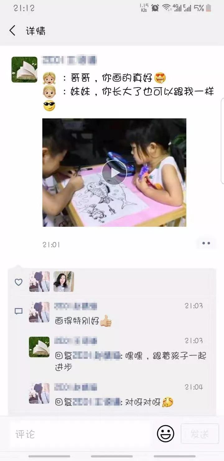 其實(shí)幼兒時(shí)期的孩子,從生理到心理,尚處在不成熟階段,手部肌肉、腕骨發(fā)育都很不完善,在拿筆畫畫時(shí),就會(huì)出現(xiàn)一種本能的“自由”,畫出的畫就會(huì)不成比例、不流暢。所以,我們?cè)谠u(píng)價(jià)孩子的作品時(shí),不能用評(píng)價(jià)成人畫的標(biāo)準(zhǔn)去評(píng)價(jià),應(yīng)該站在孩子的立場(chǎng)上,用“童眼”去看、去欣賞。說(shuō)白了,就是和孩子來(lái)談他的畫,讓他覺(jué)得你懂他的“語(yǔ)言”,讓孩子更信任你、尊敬你,這也是許多父母夢(mèng)寐以求的。有些孩子在家長(zhǎng)的正確指引下越畫越喜歡越畫越好,近期點(diǎn)金小學(xué)員的爸爸媽媽們與我們分享了很多好的經(jīng)驗(yàn)。