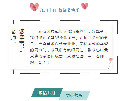 最后,請允許點金美術(shù)再次向我們敬愛的老師,致以最衷心的感謝、最崇高的敬意和最真誠的祝福,祝你們身體健康,工作順利,生活美滿,闔家幸福!