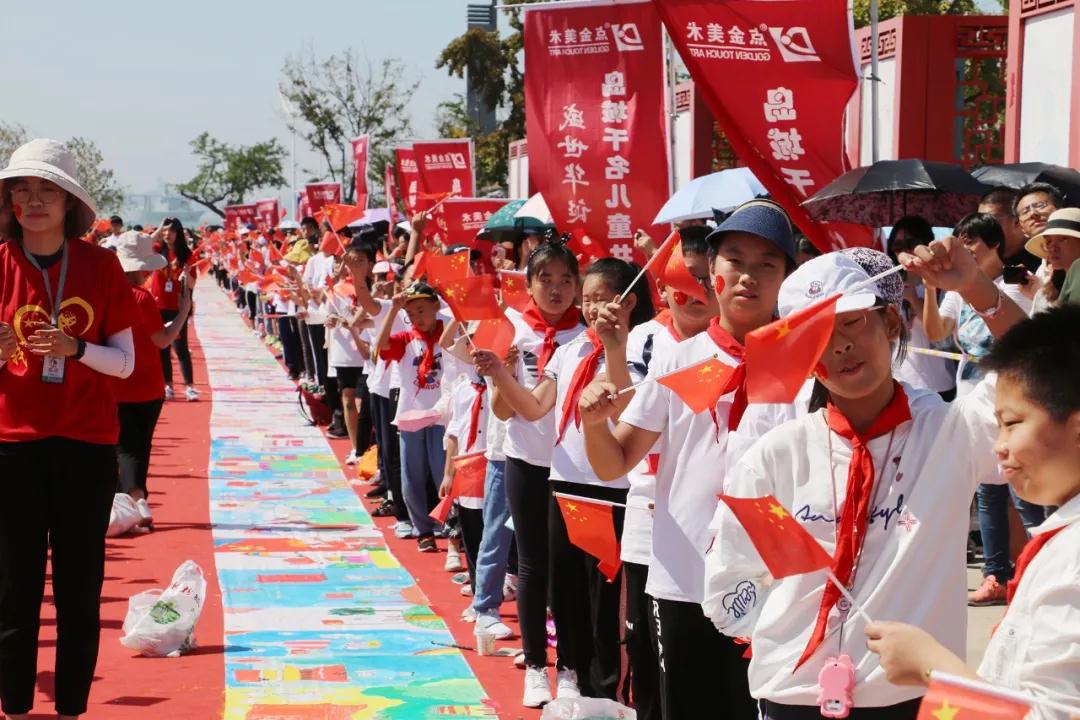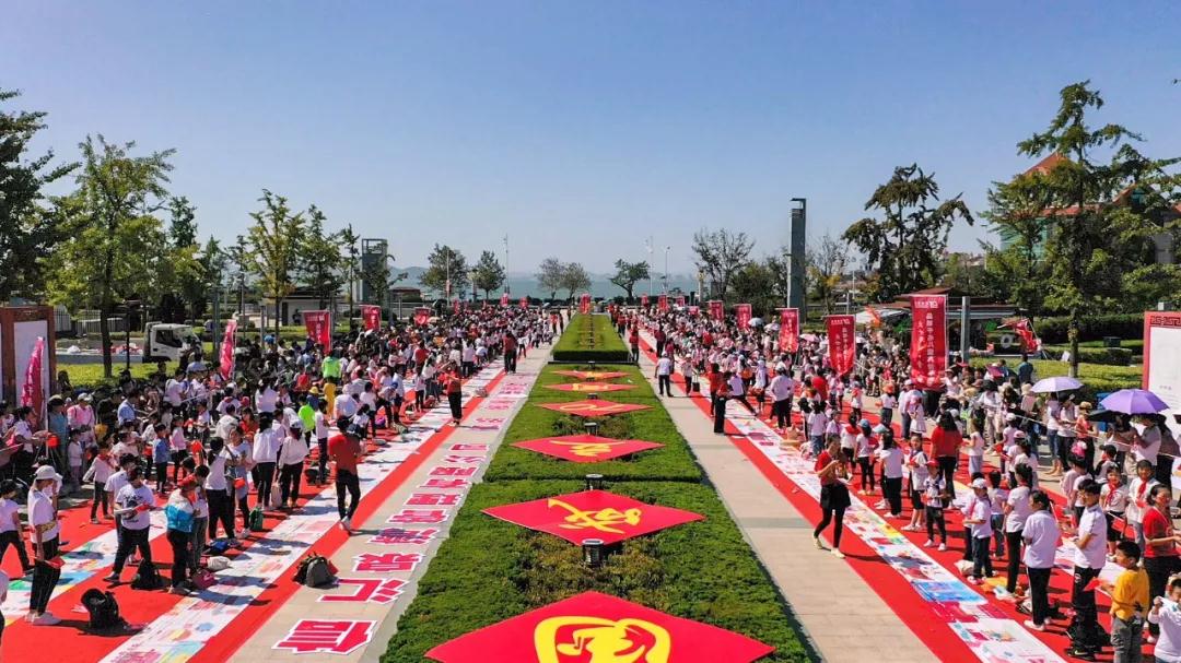 青島匯泉廣場點(diǎn)金美術(shù)千名學(xué)員共繪千米長卷——手繪祖國獻(xiàn)禮國慶