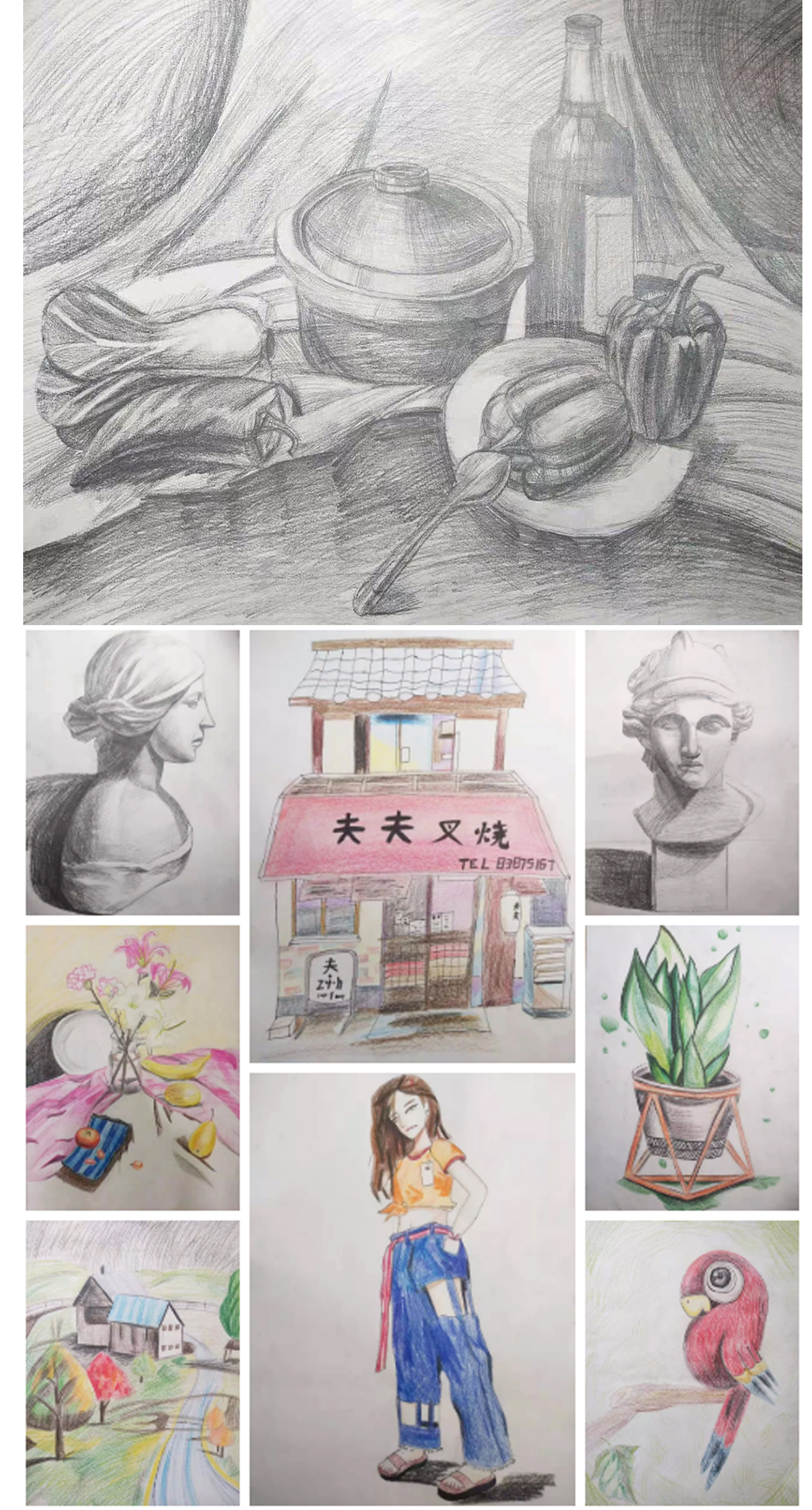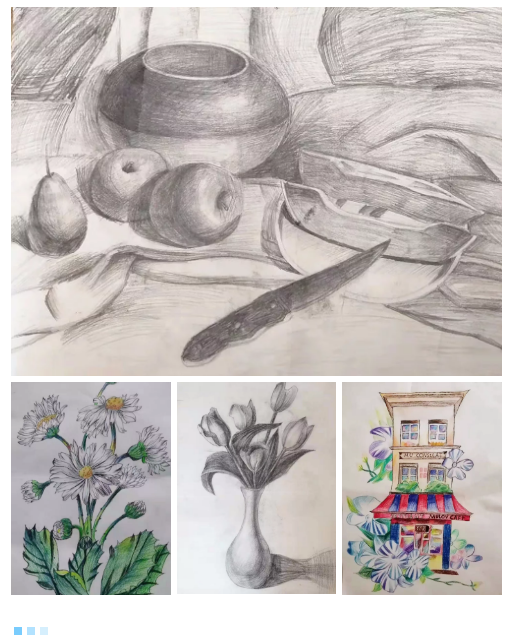 周佳雪:比較靦腆的一位女孩子,也是我們的老學(xué)員了,上課認(rèn)真投入,堅持,自律,懂事,雖然距離她學(xué)習(xí)的地方較遠,但是多年來一直風(fēng)雨無阻,在畫畫方面的堅持使她進步很大,愿你能堅持自己的夢想,成就更好的自己。