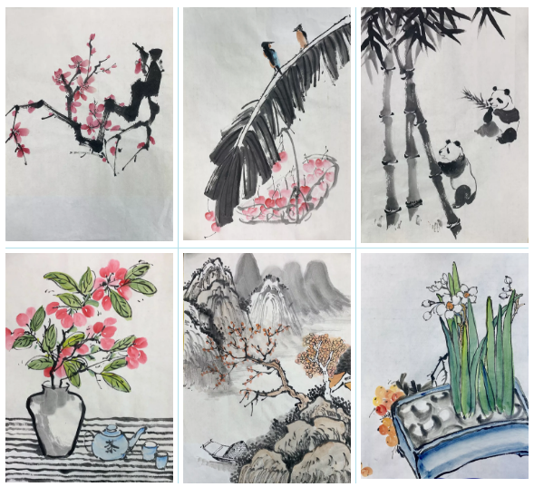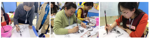 激烈的討論過后,老師們一起賞析了大量的優(yōu)秀國畫作品,并從中得到了啟發(fā)和啟示。老師們按捺不住創(chuàng)作熱情,紛紛提筆作畫,無論是群山拱翠、雄渾壯麗的山水畫,還是典雅俏麗、惟妙惟肖的人物畫,或者燦爛瑰麗、詩意濃郁的花鳥畫……老師們各顯身手,他們中的作品或筆力蒼勁、氣勢如虹,或濃淡相映、疏密有致,或飄逸瀟灑、空靈雋永,有的是生活所悟,有的是所見風(fēng)景,無不栩栩如生,展現(xiàn)出東方水墨畫的無窮魅力。揮筆之間,老師們也互相欣賞著,探討著更豐富的表現(xiàn)形式和創(chuàng)作角度,希望通過自我水平的提高進(jìn)一步豐富課堂教學(xué)內(nèi)容,提高教學(xué)質(zhì)量。