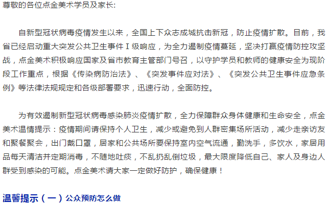 眾志成城 防控就是責(zé)任 點金美術(shù)提醒您 公眾預(yù)防從我做起