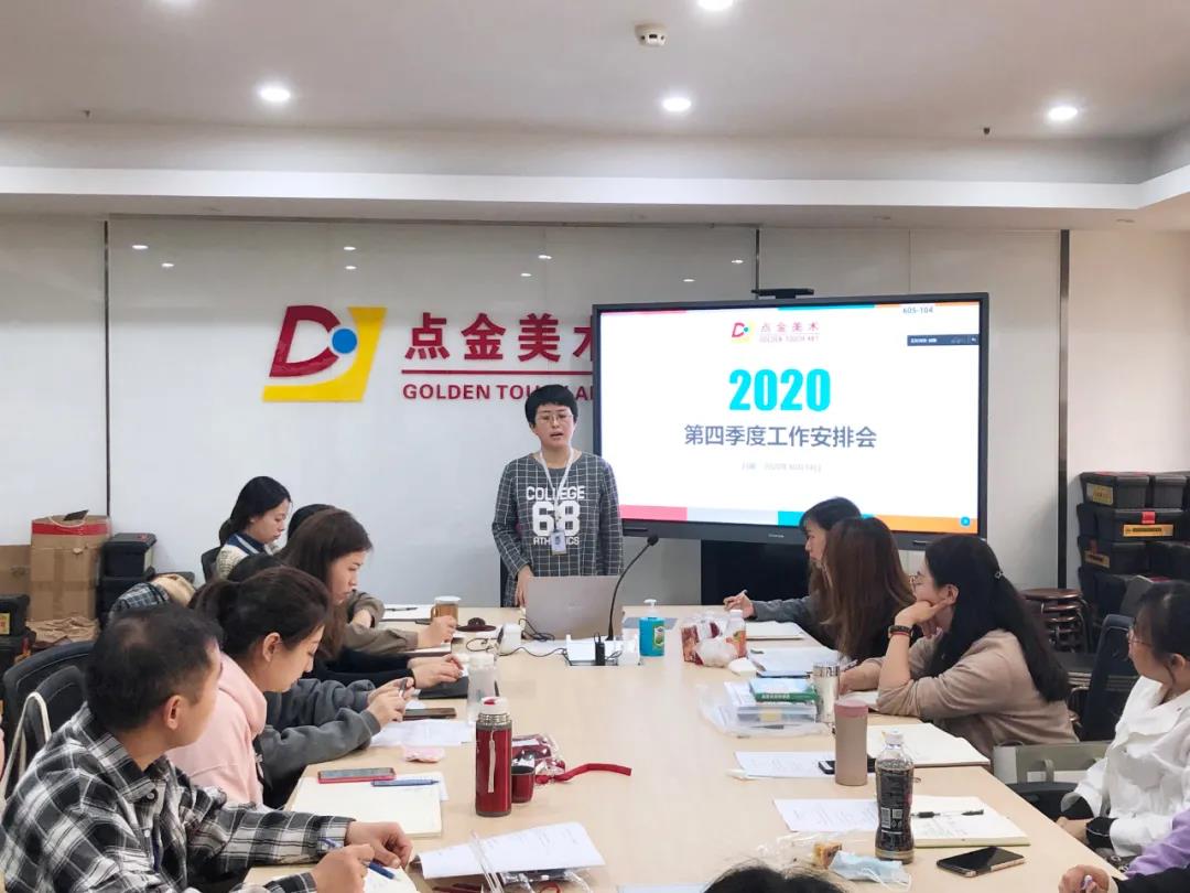 10月14日,點金美術(shù)第四季度工作安排部署會于點金美術(shù)辦公總部順利召開。點金美術(shù)校長侯魯峰、執(zhí)行校長徐靜、總督學(xué)韓娜、教研室主任王群亮及各校區(qū)、各部門負責(zé)人出席會議。