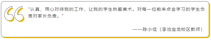 你能想象到,一名美術(shù)輔導(dǎo)老師得到的最溫暖的褒獎是什么?關(guān)于這個問題,點(diǎn)金美術(shù)李滄寶龍校區(qū)的陳小佳老師,可能很有發(fā)言權(quán)... ...