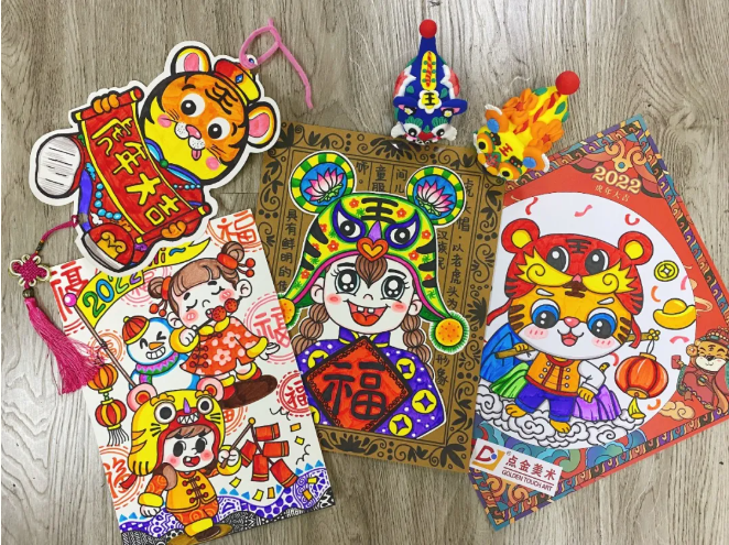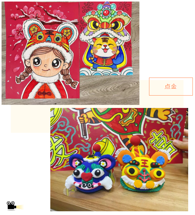 每年的節(jié)氣或者節(jié)日,點金美術(shù)教研室都會組織各校區(qū)進行素材的創(chuàng)作,例如正在進行的新年主題課,老師們用虎年的元素進行創(chuàng)作,用不同的繪畫手法和不同的材質(zhì)表現(xiàn),來完成新年主題課的呈現(xiàn)。而這些集結(jié)了老師們智慧的范畫,經(jīng)過篩選,都被收錄了起來,編制成日后的課程內(nèi)容。
