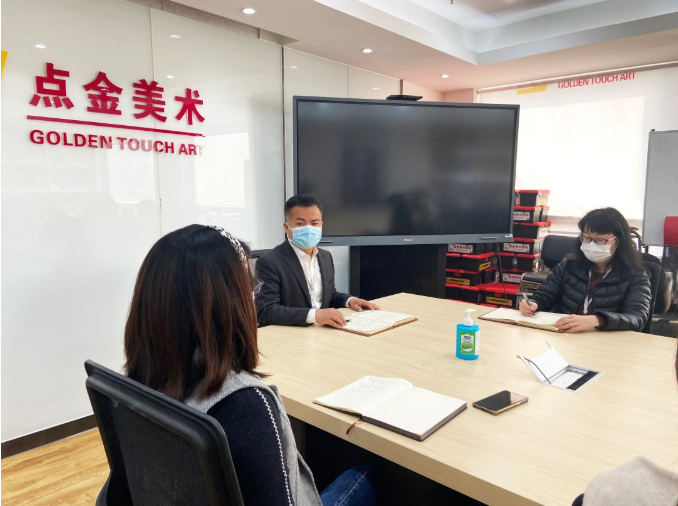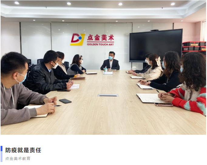本著對社會疫情防控的響應責任、對員工家庭健康的保障責任,以及對學員藝術學習的公益責任,本次會議圍繞“儲備防疫物資”、“完善應急措施”、“加強職工管理”等內容有序展開,并確保在做好防疫工作的大前提下,高質量、高效率推進點金美術“線上公益課程”。