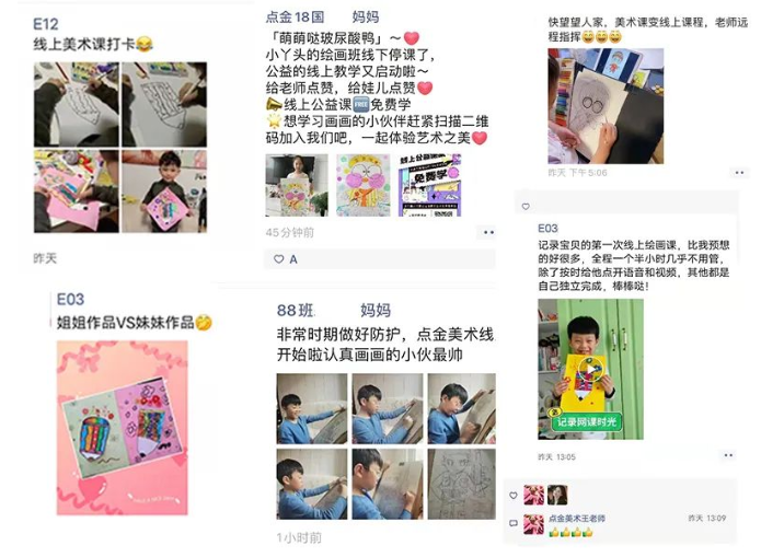 疫情期間,點(diǎn)金美術(shù)用這樣一節(jié)節(jié)線上公益課在學(xué)員們的日常生活中增添色彩,用藝術(shù)點(diǎn)亮他們的生活,豐富他們居家的短暫時光。